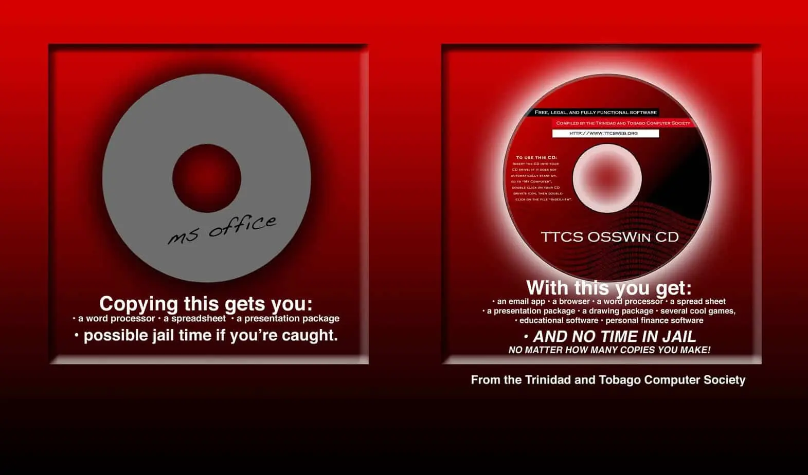 Proposed osswin marketing poster – also contains an anti-piracy message.